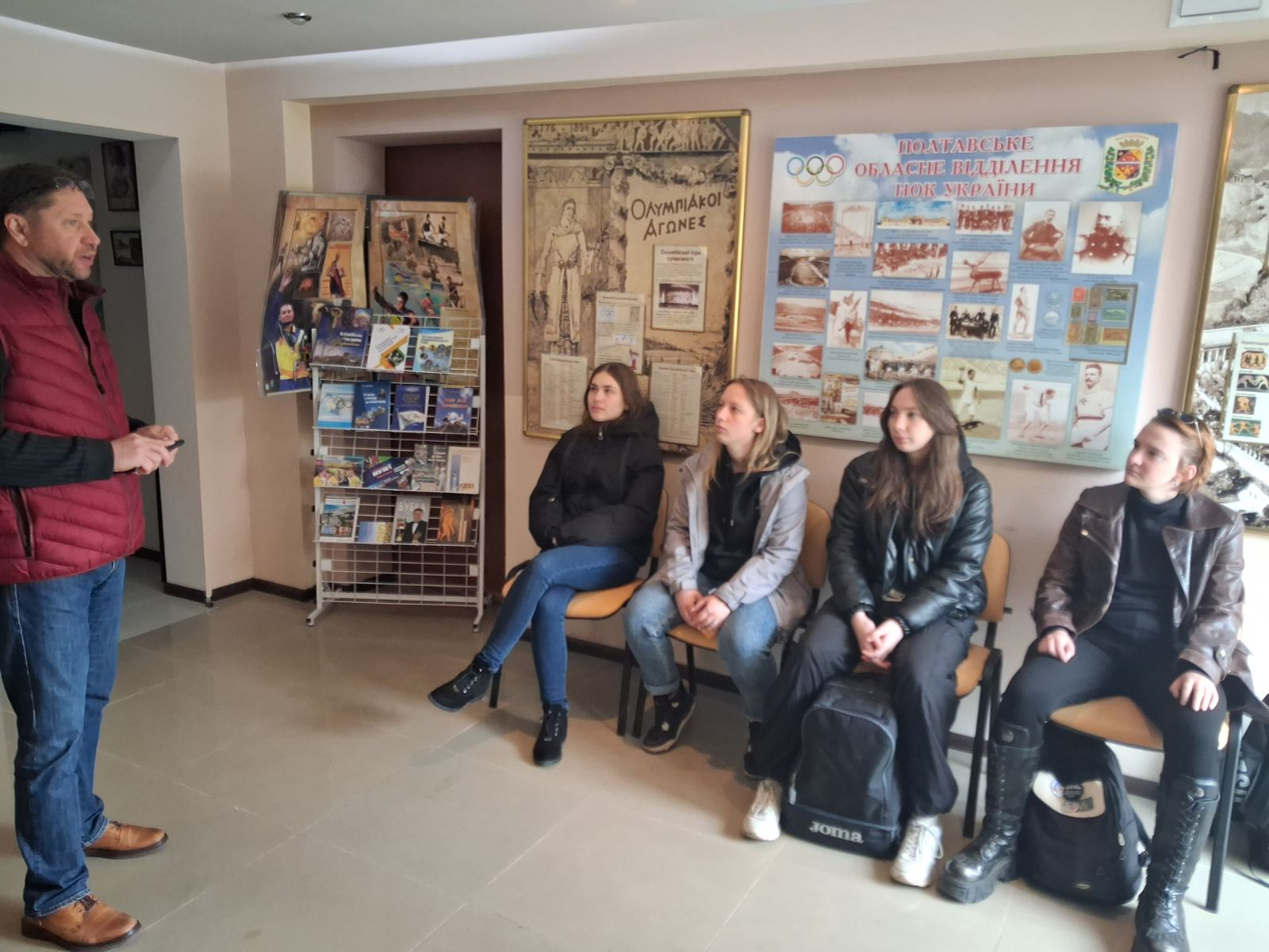 Екскурсію провів Віталій Павлов, член виконавчого комітету Полтавського обласного відділення Національного олімпійського комітету України, історик-краєзнавець, який представив унікальні експонати, серед них нагороди, спортивний інвентар та архівні матеріали. Студенти із зацікавленням слухали розповідь та ставили запитання. Відвідування музею стало не лише пізнавальним, а й мотивуючим досвідом, що сприяє популяризації спорту та здорового способу життя серед молоді.