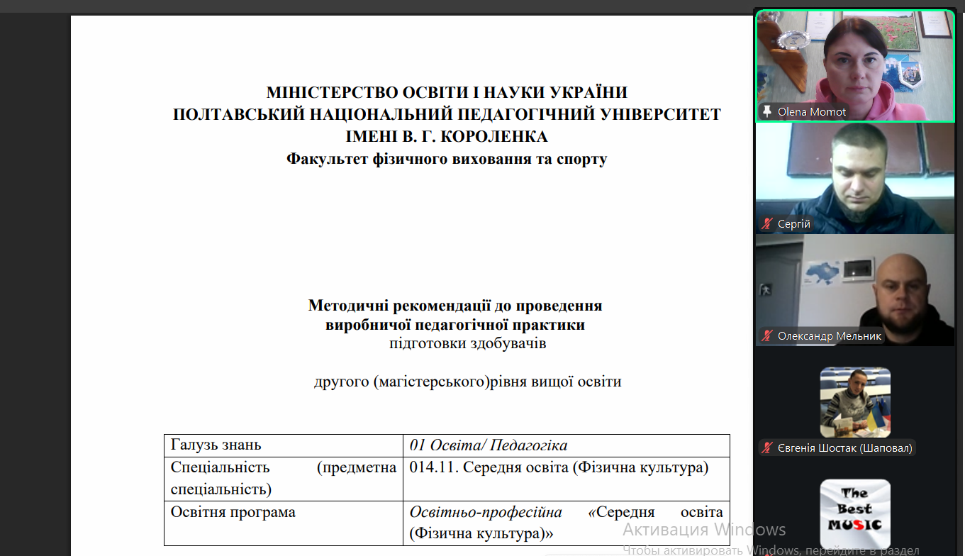 31 жовтня 2025 року з використанням сервісу відеозв’язку Zoom на кафедрі теоретико-методичних основ викладання спортивних дисциплін факультету фізичного виховання і спорту відбулася настановча конференція з Виробничої педагогічної практики для здобувачів другого (магістерського) рівня вищої освіти спеціальності 014.11 Середня освіта (Фізична культура).